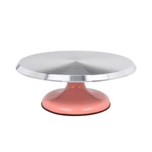 Fabriqué en aluminium de qualité alimentaire, ce plateau tournant reste stable pendant que tu ajoutes les touches finales à tes gâteaux. C’est ton partenaire de décoration fiable.