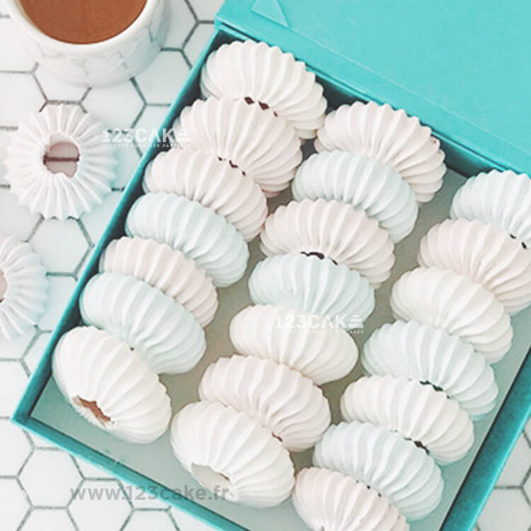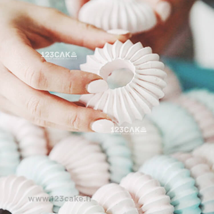Mais les possibilités ne s’arrêtent pas là ! La forme unique de la douille Sultane te permet également de réaliser des meringues spectaculaires. Chaque pression sur la douille crée une meringue ronde cannelée, avec un espace au milieu. Ce petit espace offre une opportunité créative supplémentaire, que tu pourras garnir de glace, de fruits frais ou de douceurs sucrées. Les meringues ainsi obtenues seront non seulement délicieuses, mais aussi visuellement captivantes, ajoutant une touche de magie à tes desserts.