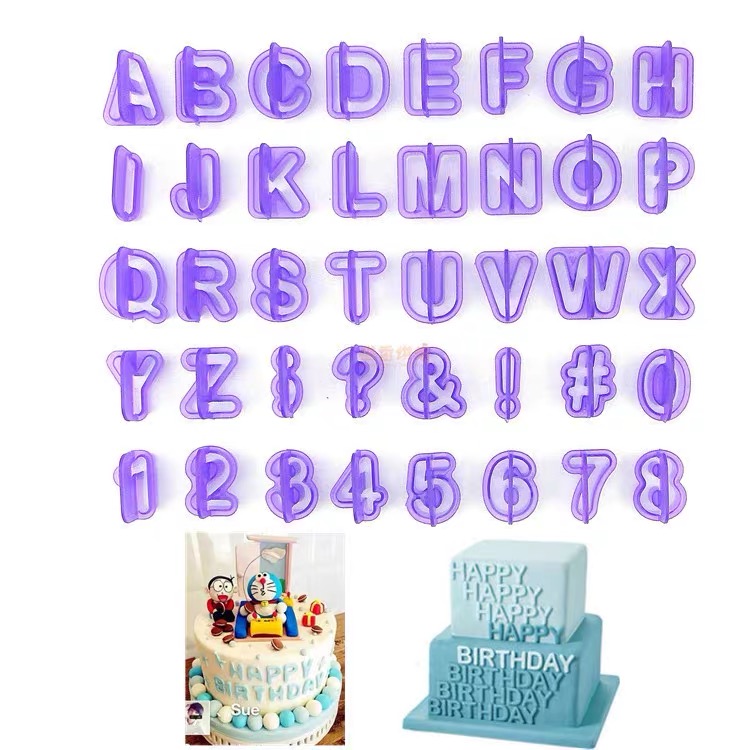 • Ensemble de 21 emporte-pièces comprenant les chiffres de 0 à 9 et les lettres de l’alphabet de A à Z.
