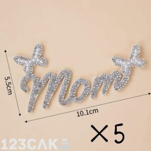 Ajoute une touche glamour à tes créations pâtissières avec ce lot de 5 toppers “Mom” spécialement conçu pour les gâteaux de la Fête des Mères 💖 ! Chaque pièce est ornée de strass brillants et de perles nacrées, formant un élégant « Mom » entouré de deux petits papillons. Effet waouh garanti !