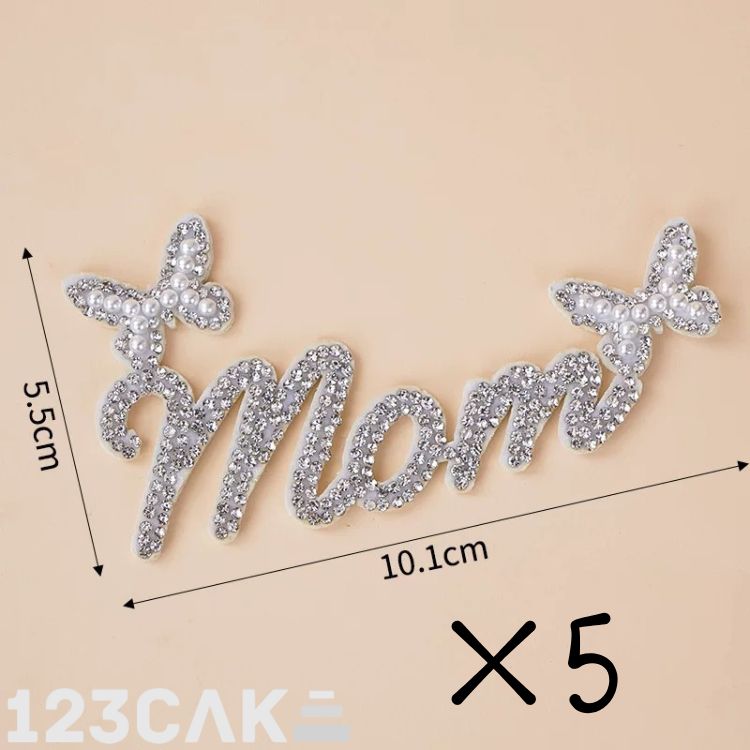 • 💖 Lot de 5 toppers “Mom” – avec strass brillants et perles blanches