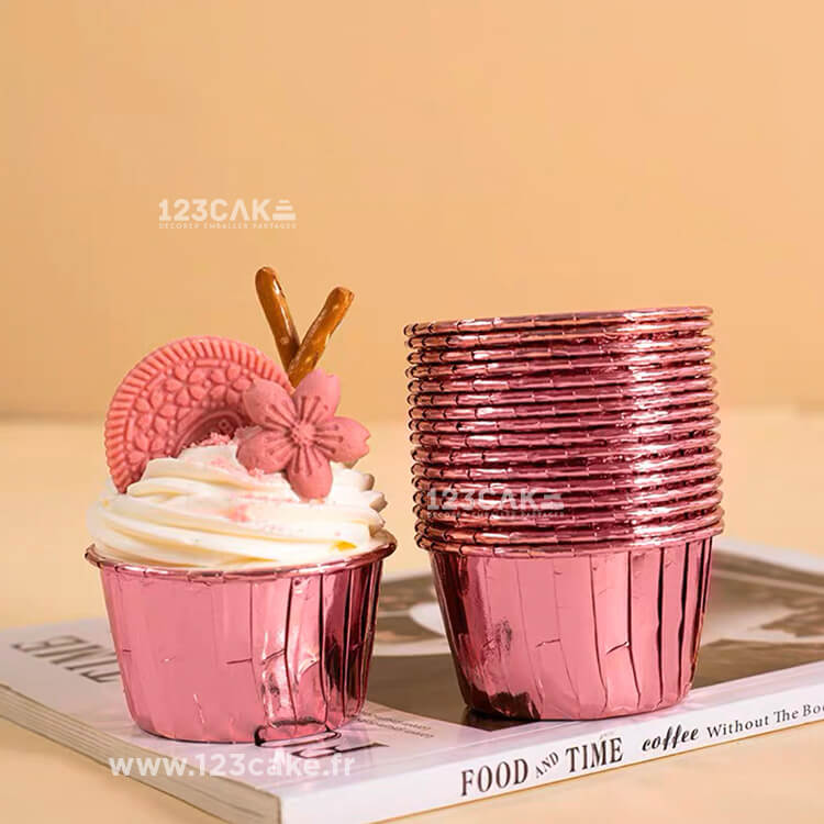 Pack de 10 caissettes Rose Gold pour cupcakes et muffins aluminium et papier diamètre 7cm /hauteur 3.5cm